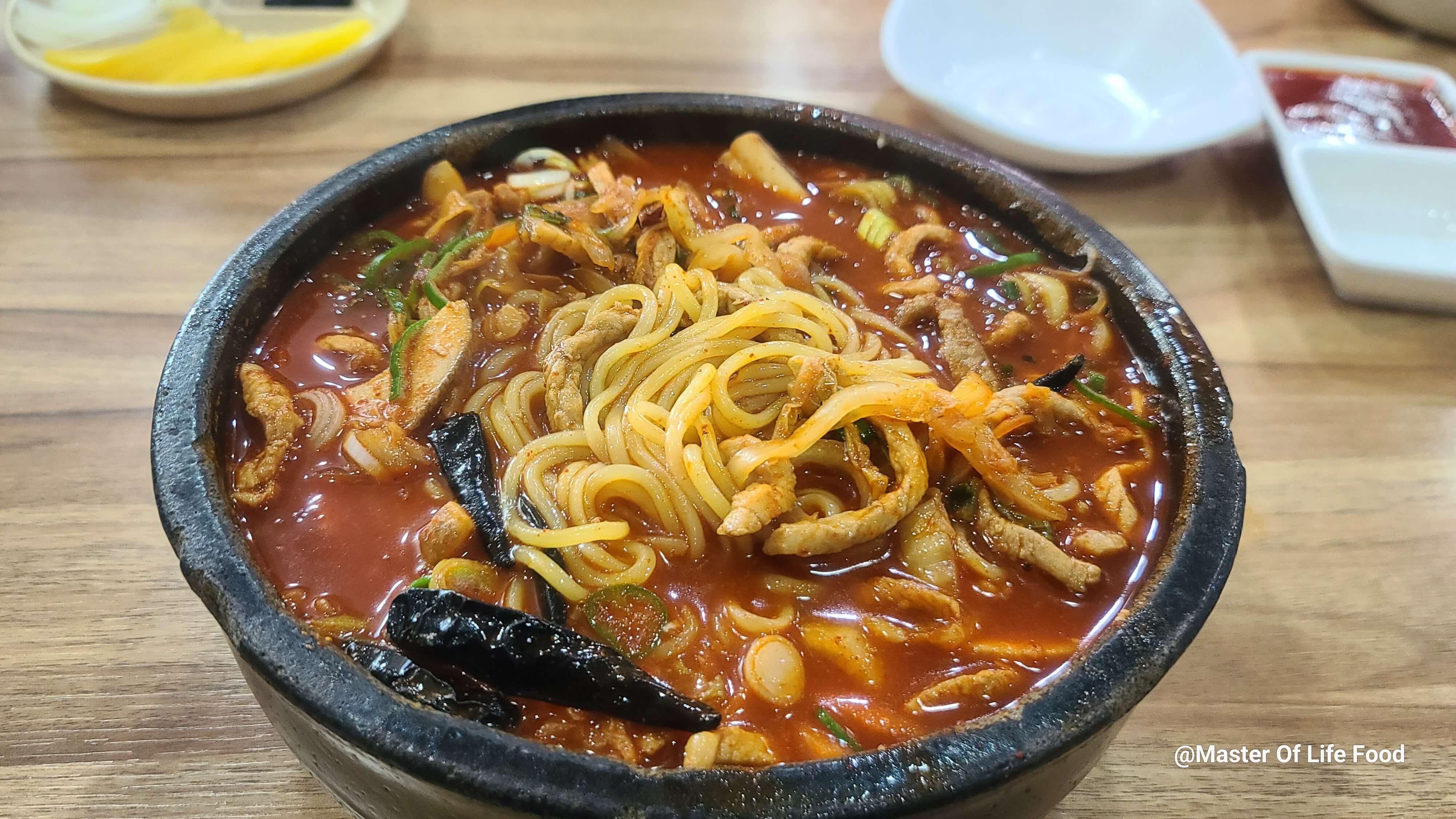 제가 먹은 것은 매운고기짬뽕과 불짜장 그리고 탕수육을 먹었습니다. 매운 뚝배기 고기 짬뽕은 많이 맵지는 않지만 뚝배기에 고기가 듬뿍 들어가 있어서 짬뽕의 면 사이사이를 채워주면서 고기의 식감이 잘 어울려 짬뽕의 맛을 더욱 올려주고 매운 짬뽕이라서 검은색 고추가 들어가는데 먹으면서 빼내서 먹으라고 사장님이 알려주십니다. 버섯과 오징어 각종 해산물들이 작아 보이는 뚝배기에 작지 않게 많이 들어가 있습니다. 불짜장은 조금 매콤한 향만 나는 것 같았습니다. 매운맛을 즐기는 사람은 만족도가 크지는 않을 것 같기는 합니다. 그리고 면발이 짬뽕도 그렇고 조금 얇습니다. 얇아서 짜장은 양이 적은 느낌이 들기도 했습니다. 술술 잘 넘어가기도 하고 포감을 느끼기는 쉽지 않았습니다. 짬뽕은 양이 혼자 먹어도 어느 정도 괜찮았습니다. 그리고 탕수육 탕수육이 튀김이 굉장히 바삭바삭했고 안에 고기도 부드러워서 두 번째 방문하고 싶은 식당이었고 다음에 방문했을 때는 해물짬뽕을 한번 먹어 보고 싶었습니다.