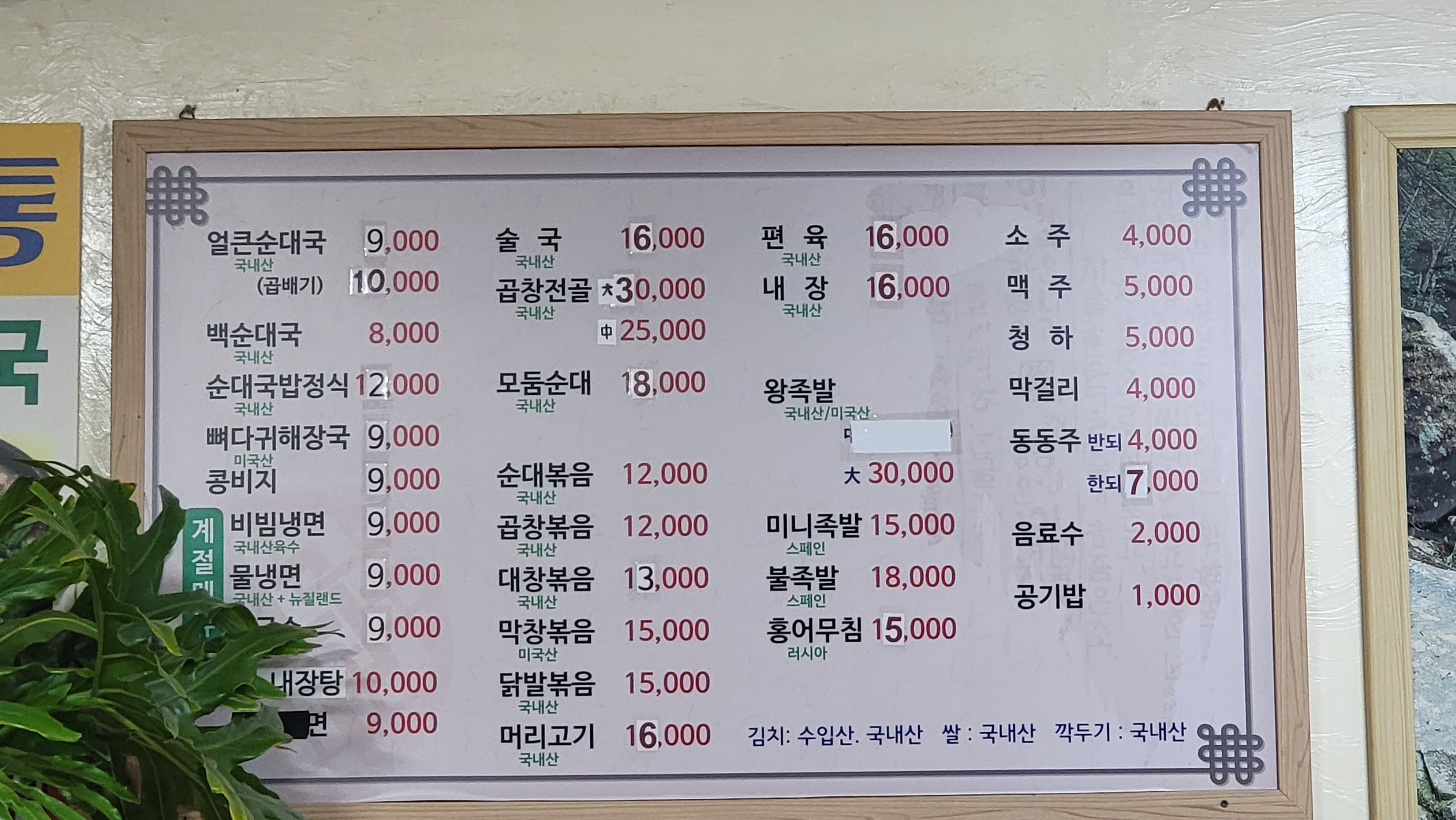 소문난 순대집 - 가격