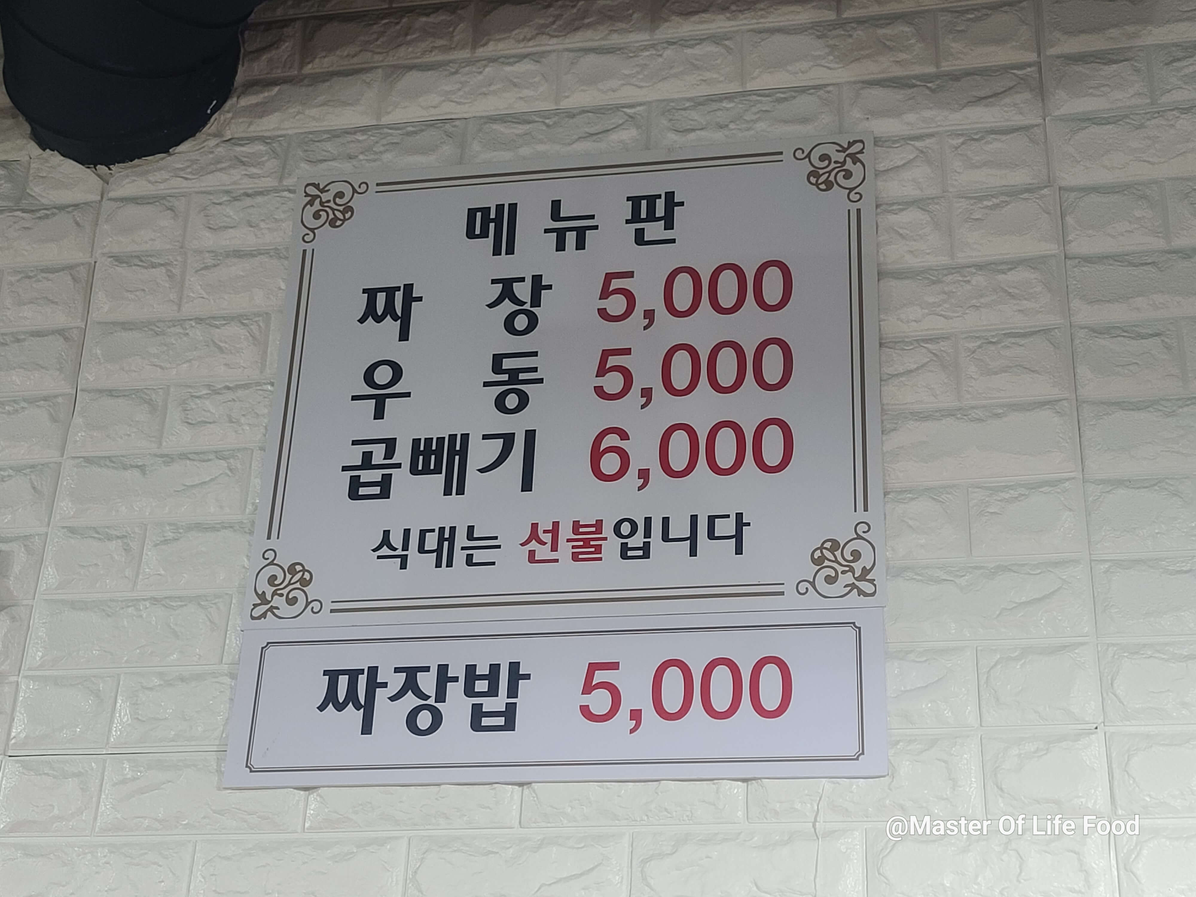 짜장 5,000원 우동 5,000원 곱빼기 6,000원
