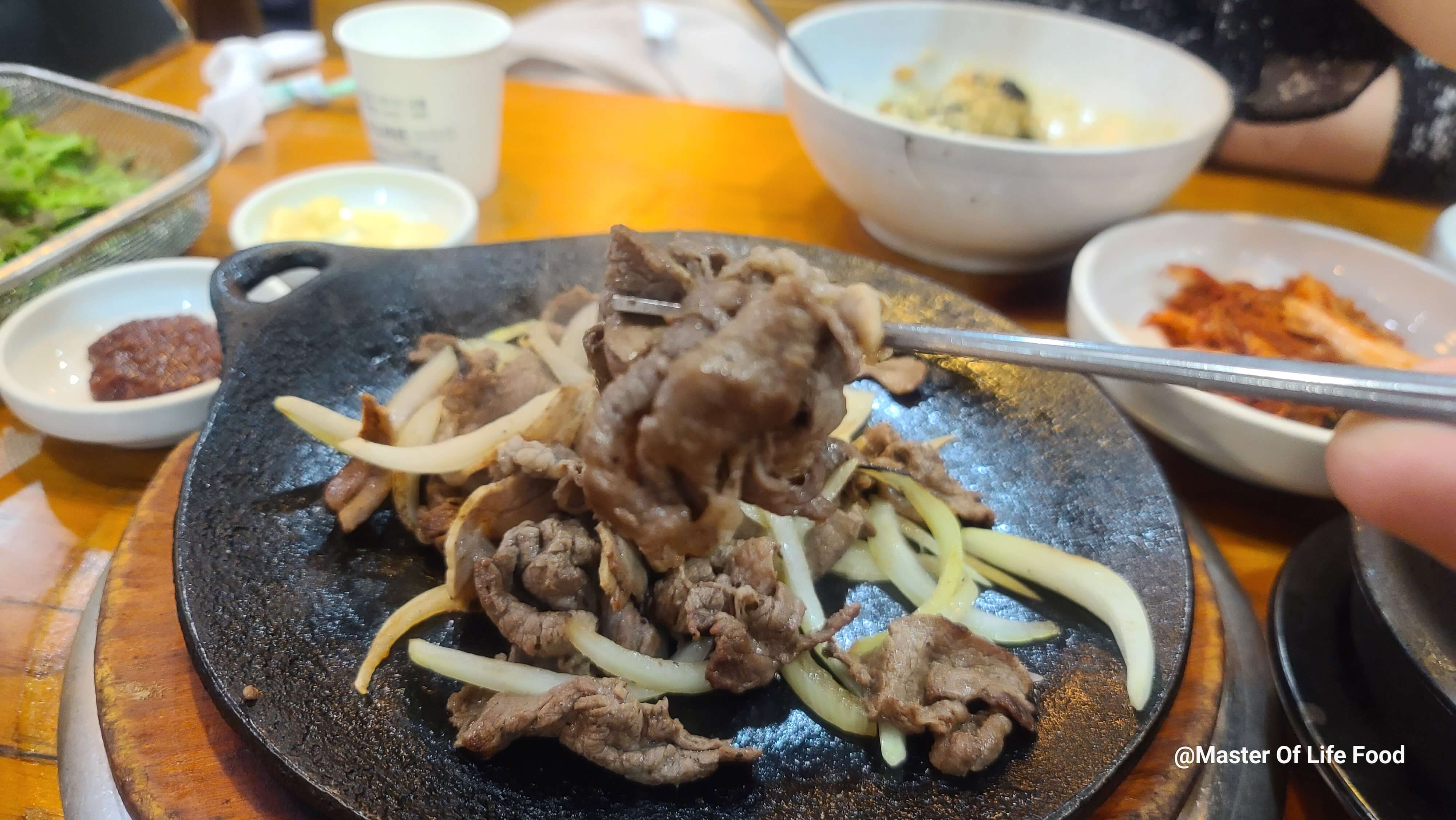 저는 2인분인 B세트를 먹었었는데 B세트는 숯불고기와 나물밥 그리고 된장찌개로 구성돼있었습니다. 그리고 밑반찬이 여러 종류로 나오는데 그중에 두부가 제일 부드럽고 맛있었습니다. 메인 음식보다 두부가 더 기억이 남기도 합니다. 우선 불고기와 곤드레 나물밥이 조화가 잘 어울립니다. 곤드레밥도 문안하고 하지만 기다리는 시간에 비해 특별하게 맛이 독특하지는 않았습니다. 그래도 건강한 맛을 느끼고 싶으시다면 가셔도 좋습니다. 된장찌개도 진한 것이 고기의 느낌함과 나물밥의 심심함을 잡아주는 역할로 안성맞춤이기도 하였습니다. 여러 메뉴들이 있지만 개인적으로는 육개장이 어떨지 궁금하긴 했습니다. 청계산을 왕왕 가는데 다음 도전에는 육개장을 한번 먹어봐야겠습니다. 양이 풍족하지 않으니 음식을 많이 드시는 분들이 사이드 음식을 시키시는 것을 추천드립니다.