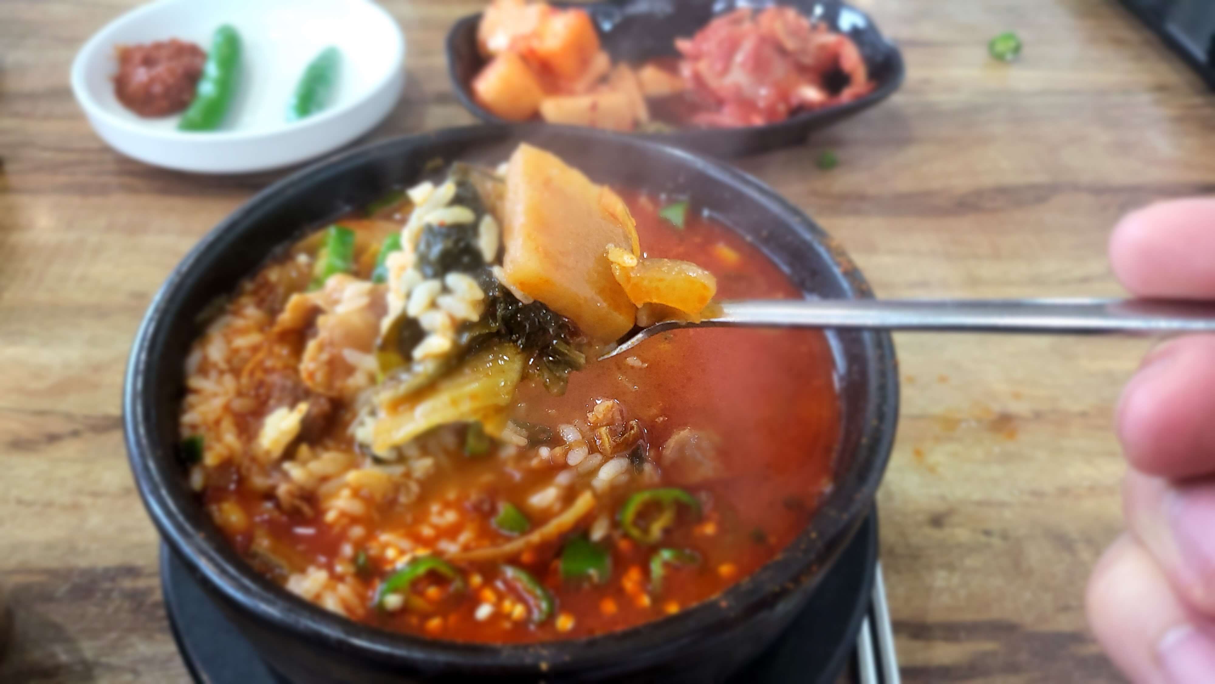 매운 것 좋아하시는 분들은 안동국밥에 청양고추 더 넣어 드시면 맛있습니다.