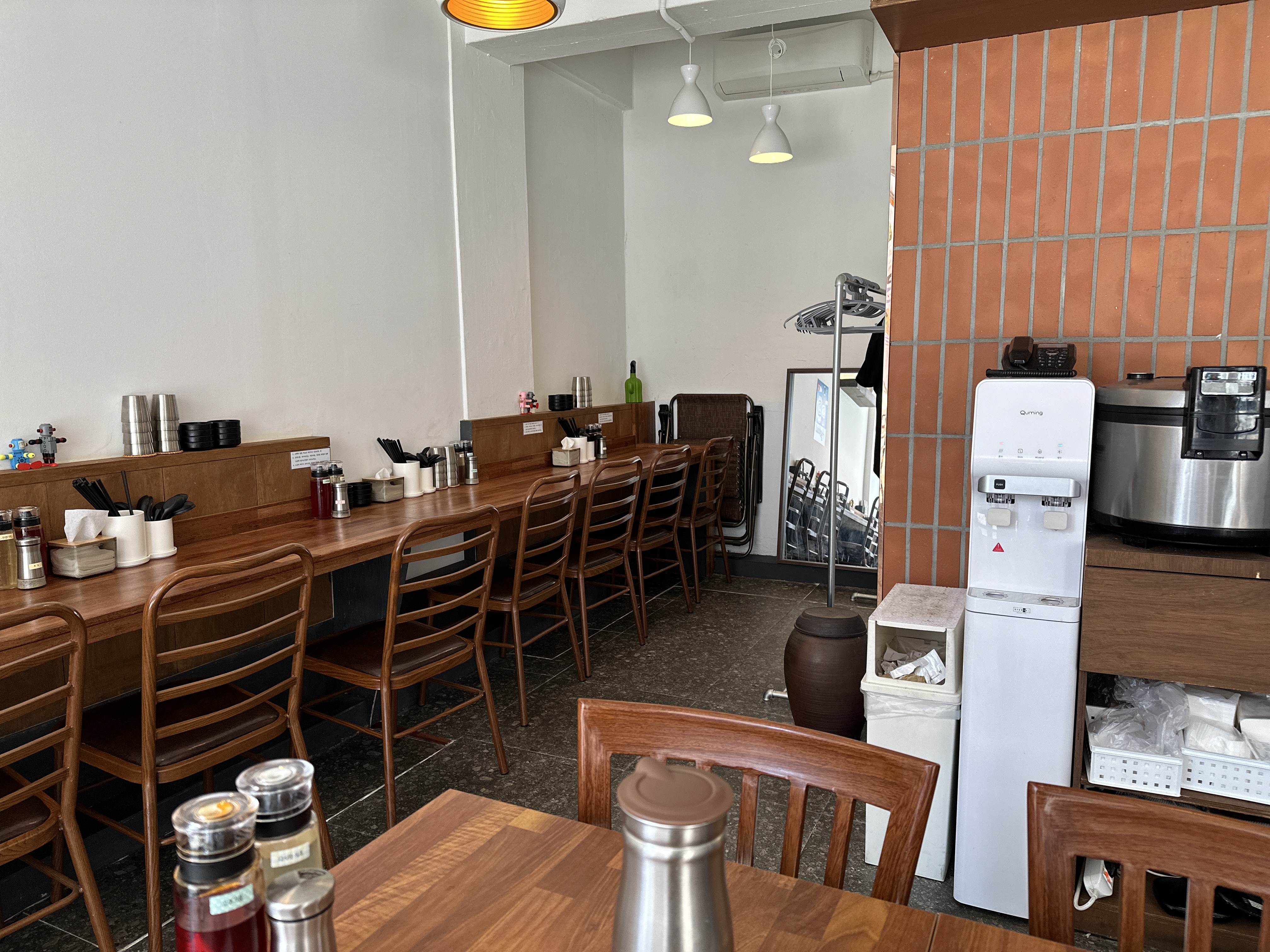혼밥 하기 좋은 환경: 혼자 식사하는 손님들을 위한 바 형태의 자리 나 칸막이가 있는 테이블이 마련되어 있습니다. 일본 음악: 일본 음악이 배경음악으로 흘러나와 분위기를 더욱 살려줍니다.