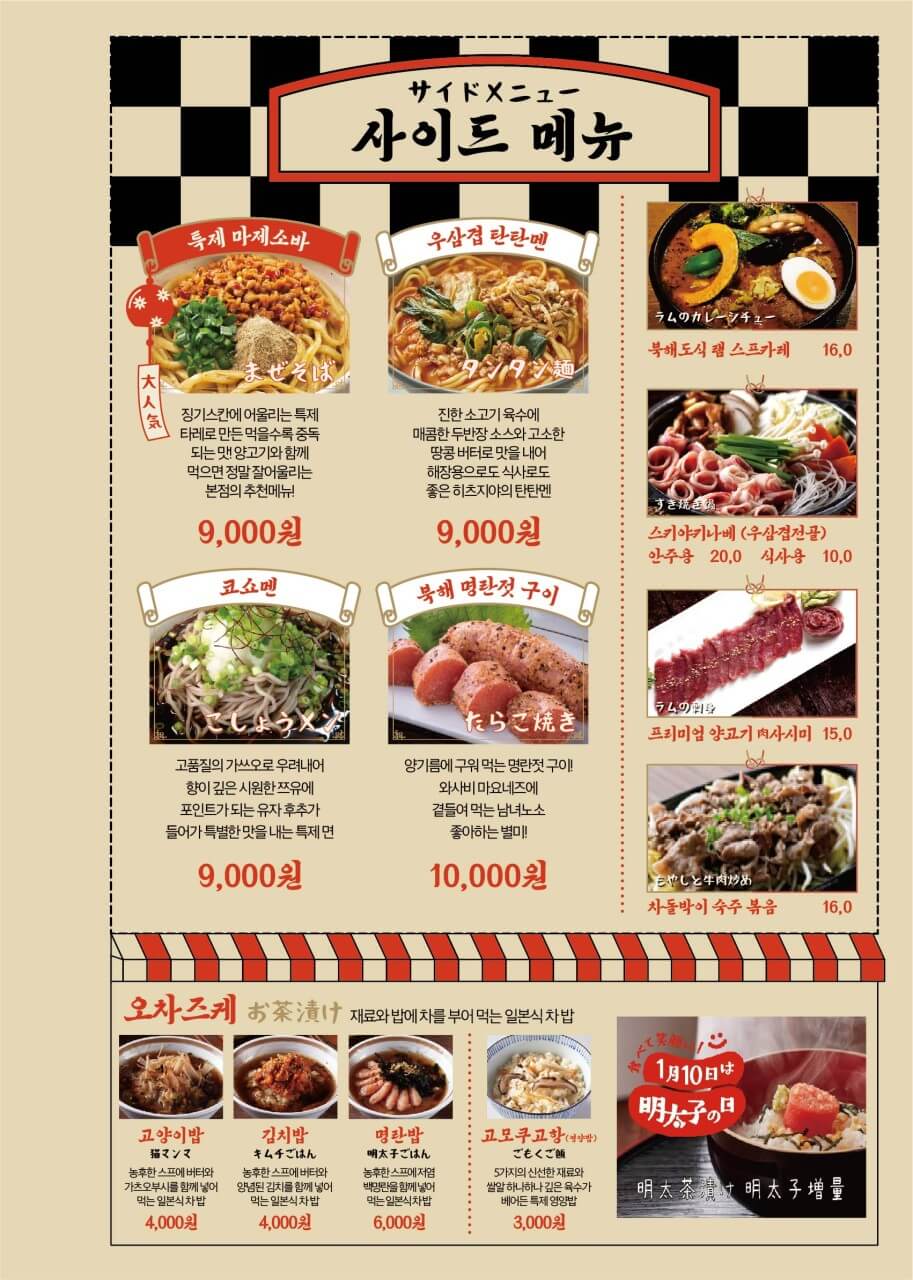 히츠지 음식은 대부분 신선하고 맛은 있습니다. 고기도 홋카이도에서 재료수급이 된다고 합니다. 숙성과정을 거친 고기로 육즙이 가득하면서 부러운 맛을 느낄수 있습니다. 또한 고기를 둥근 불판에 숙주 나물과 함께 구워줍니다. 음식은 역시 남이 해준 음식이 제일 맛있는 거죠~^^ 제가 먹은 메뉴는 칭기즈칸 SET + 북해명란젓 구이 + 명란밥을 먹었습니다. 메뉴를 먹다 보니 라면이 당겼는데 라면은 없다고 합니다. 매인 메뉴는 양갈비이지만 북해명란구이가 더 맛있었습니다. 짜지도 않고 고소한 맛이 일품이었습니다.