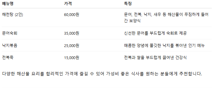 위치한 해물 보양식 전문점입니다.