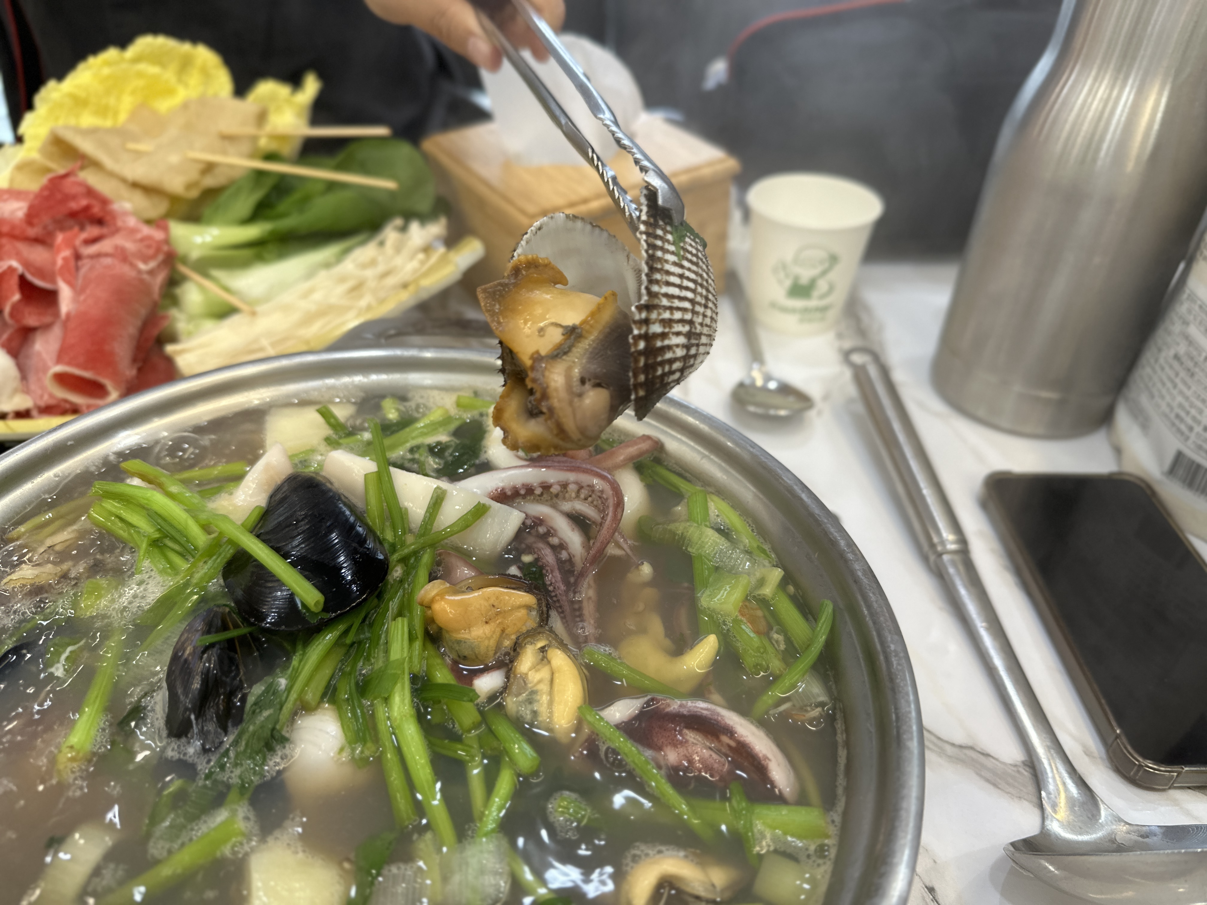 국물은 해산물의 깊은 풍미와 함께
