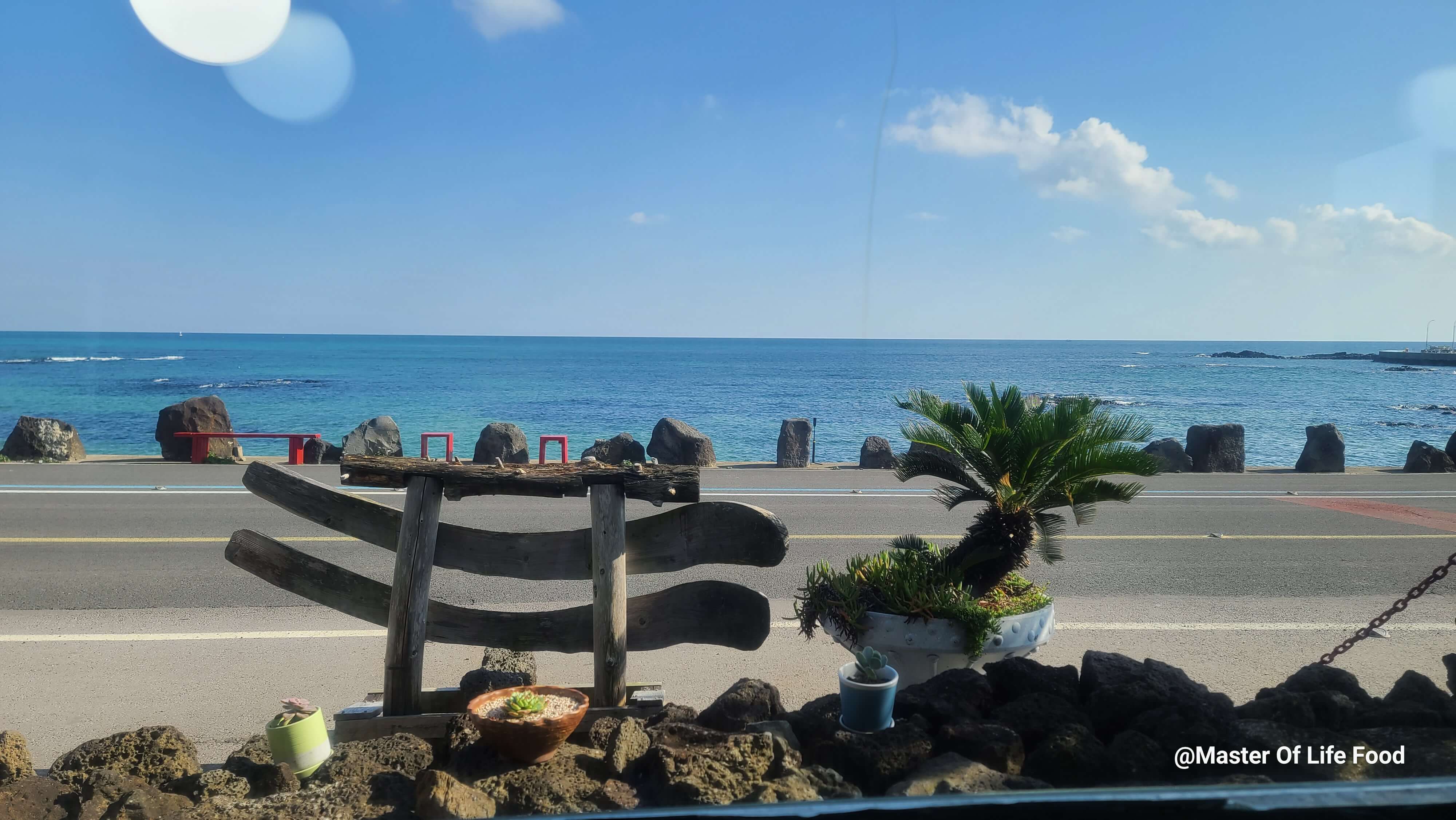 제주해맞이 쉼터는 알려져서 갔던 곳은 아닙니다. 자전거 타다가, 제주올레길을 걷다 아침에 배고파 들어가서 먹는 음식집입니다. 하지만 한번 맛보고 나서는 찾아서 갈 정도의 맛을 가지고 있습니다. 해맞이 해안로에 위치해 있고 앞이 정말 경치가 뛰어납니다. 바다를 보면서 해물라면과 파전, 정말이지 뷰를 반찬삼아 먹는 느낌입니다.  나무판의 해산물라면이라고 있는 작고 허름해 보이지만 낭만과 운치가 있는 곳입니다. 예전에 방송에도 출연한 거 같으신데 구좌읍이 정말 조용하고 경치가 좋은 곳을 더욱이 알게 되었습니다. 날씨 또한 너무 좋아서 제주도에 가면 한 번씩 비를 맞는 게 당연하였는데 10월의 어느 날 해맞이쉼터의 전경은 너무 아름답고 편안했습니다.