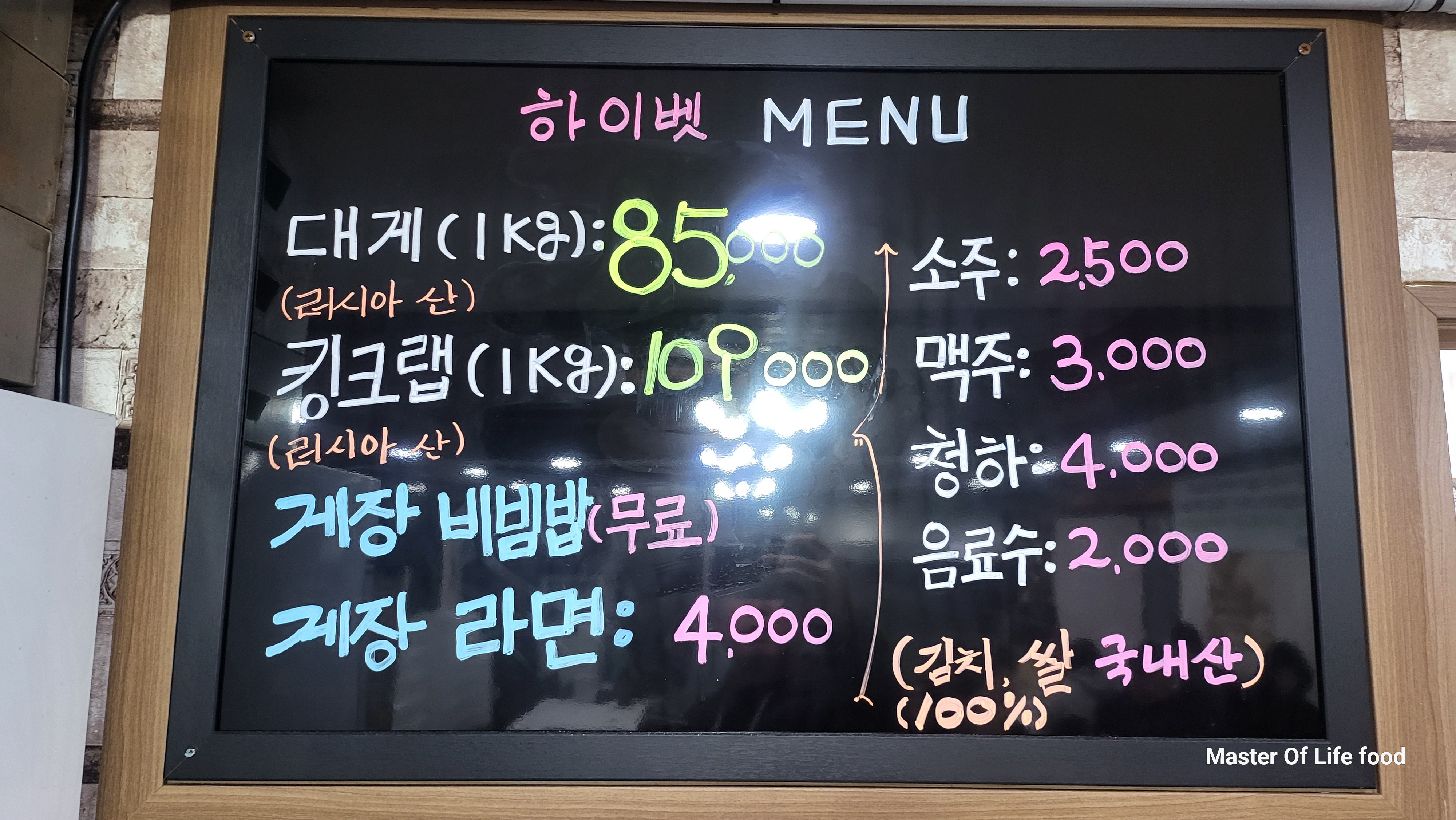 하이벳수산의 대표 메뉴는 킹크랩 요리입니다. 킹크랩 요리는 여러가지 반찬과 시원한 콩나물국이 나오는 요리를 구성하고 있는데 킹크랩과 대게를 그날 시세에 맞게 판매를 하고 요리를 합니다. 게장 비빔밥과 게장 라면까지 먹으면 세트 메뉴처럼 줄기 실 수 있습니다. 저는 대게도 먹어보고 킹크랩도 먹었는데 역시 킹크랩을 따라올 수 없어 갈 때마다 킹크랩이 너무 비싸지 않으면 먹는 편이긴 합니다. 마지막 먹었을 때는 킬로당 10만 원 정도 해서 부담스럽긴 했지만 1년에 한 번 먹기에 큰마음을 먹고 먹었던 기억이 있습니다.
